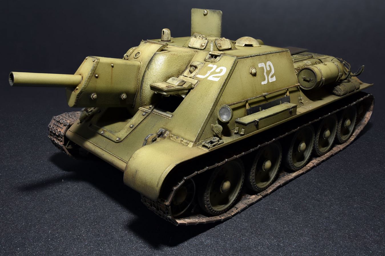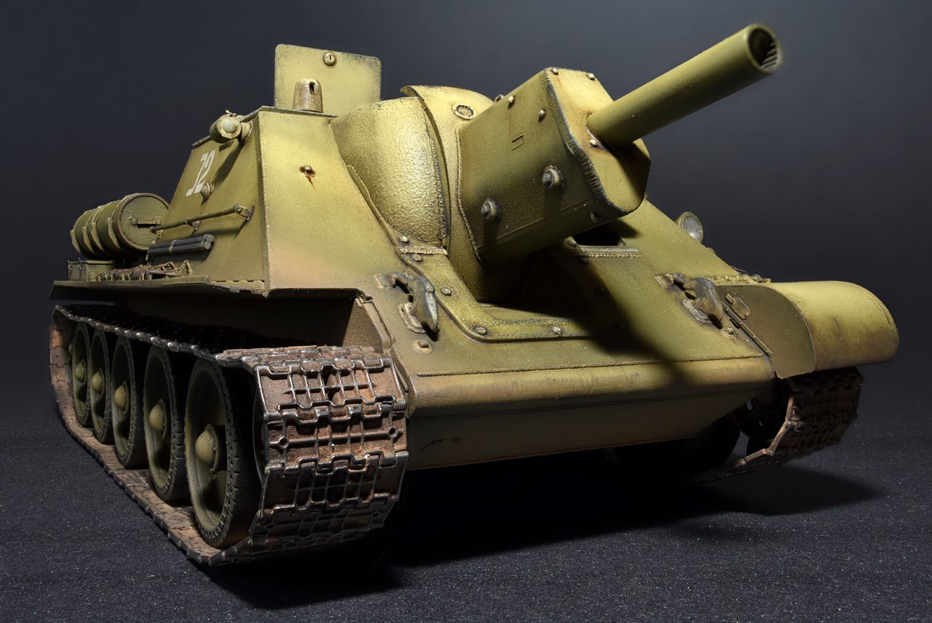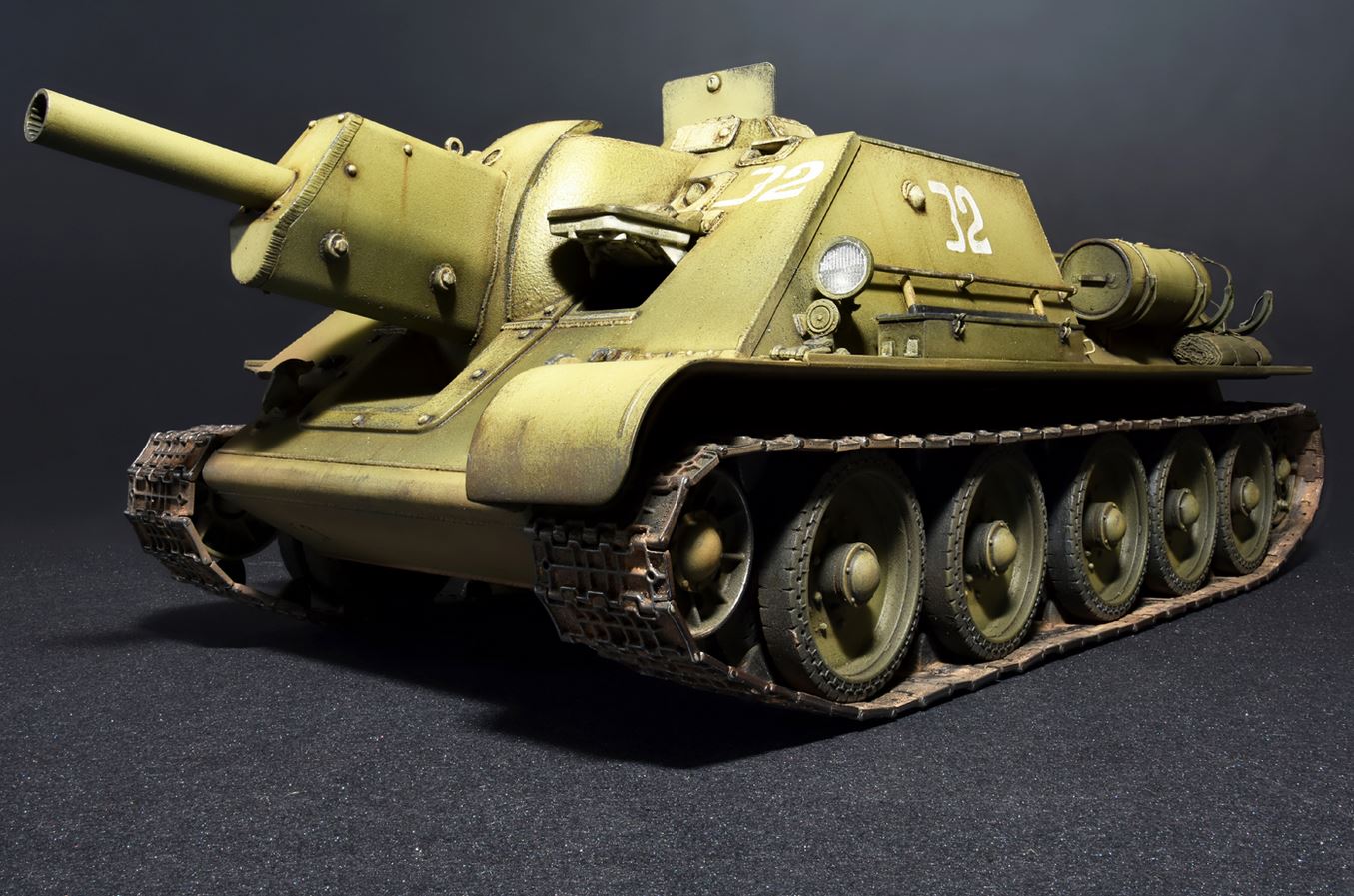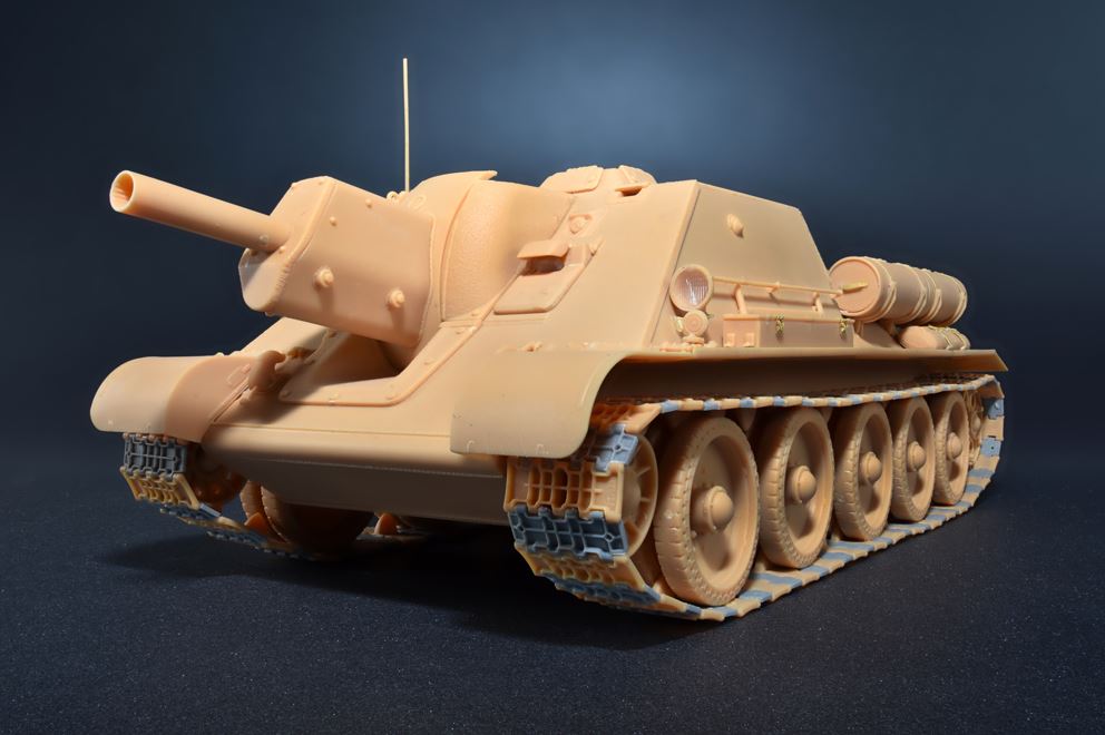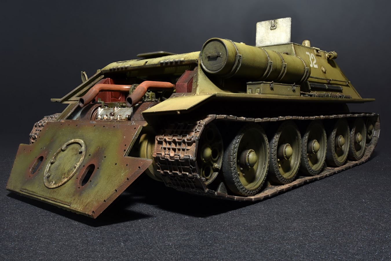 - Modelo de tanque de combate soviético Su-122 de versión inicial, en escala 1/35.