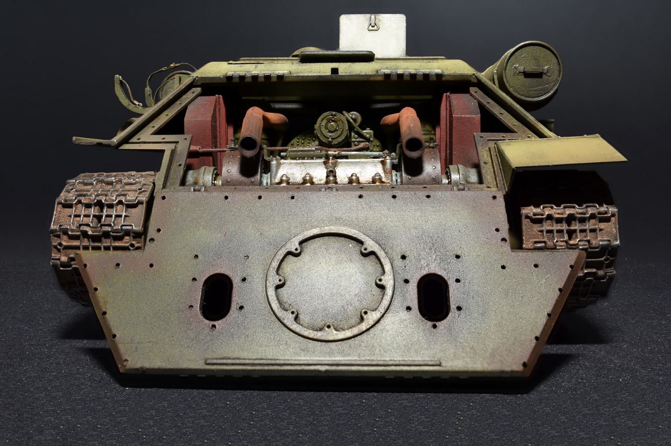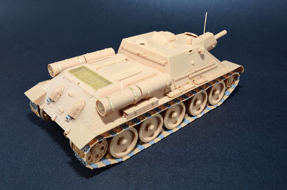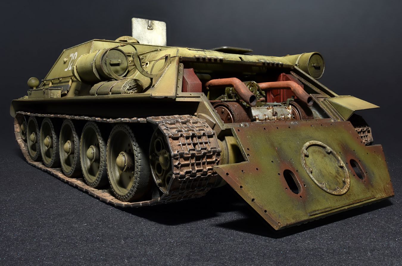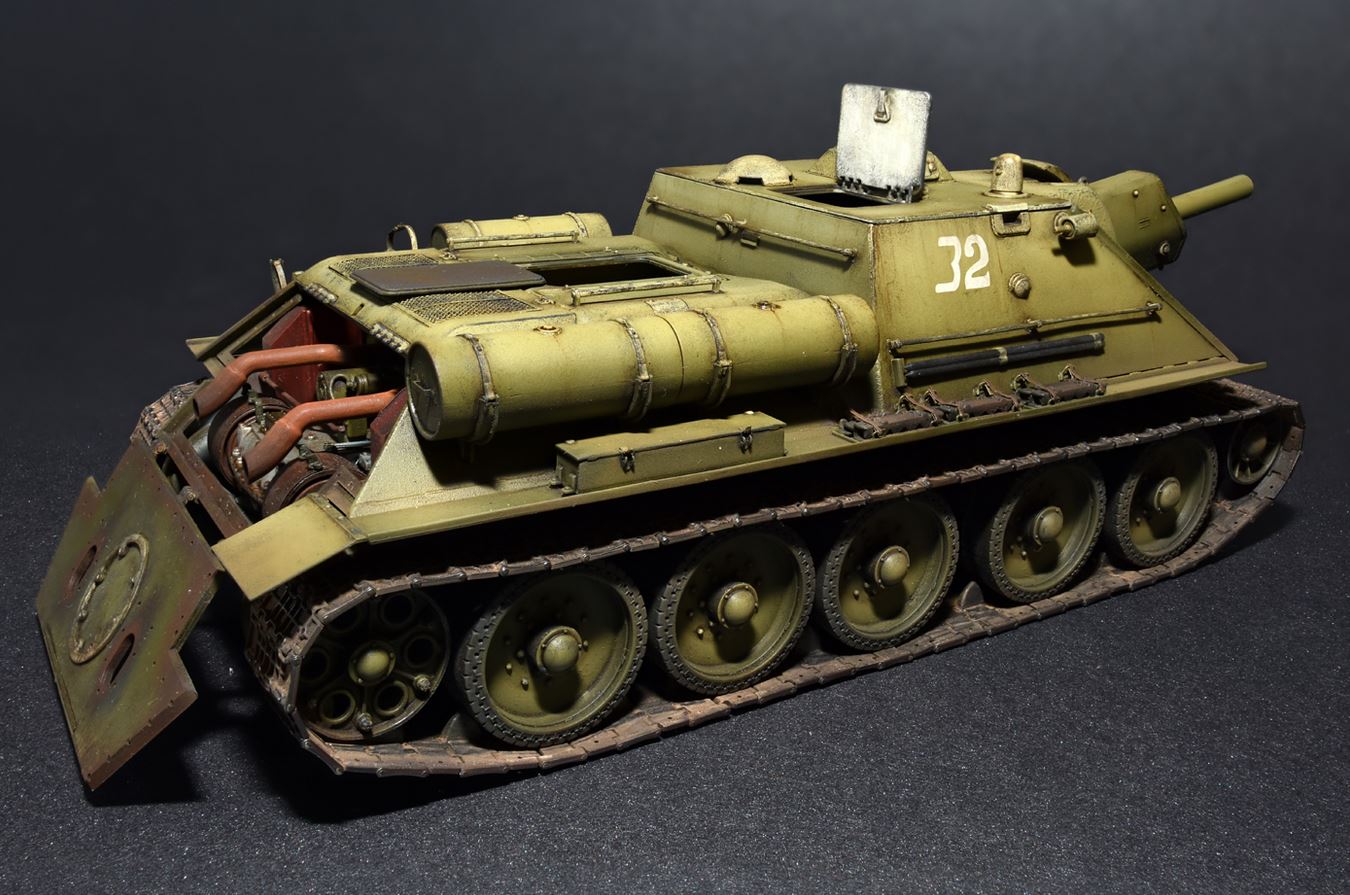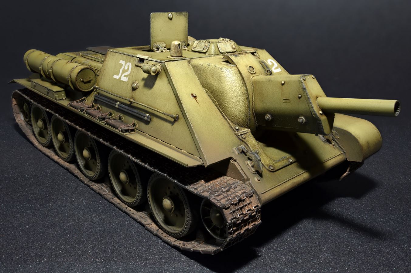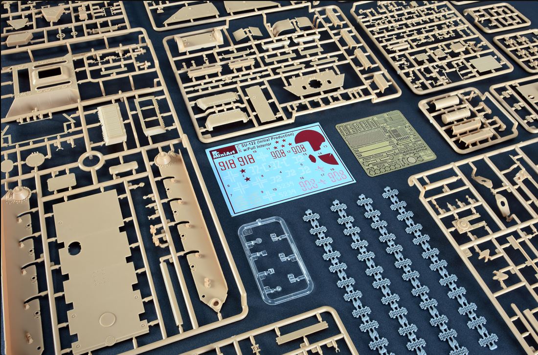 - Modelo de tanque de combate soviético Su-122 de versión inicial, en escala 1/35.