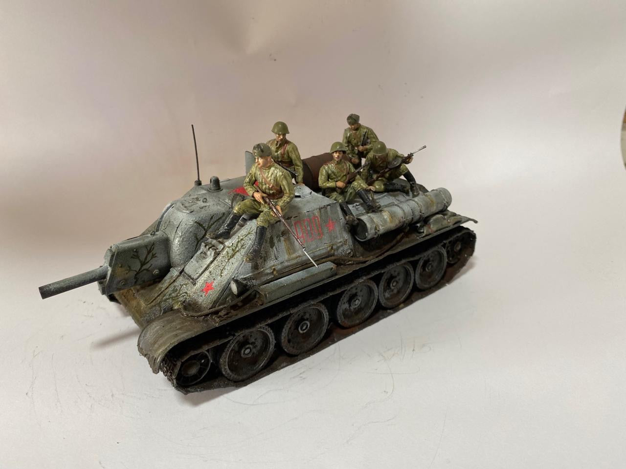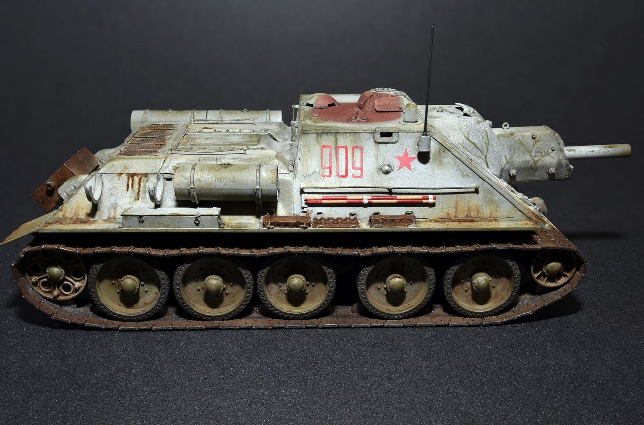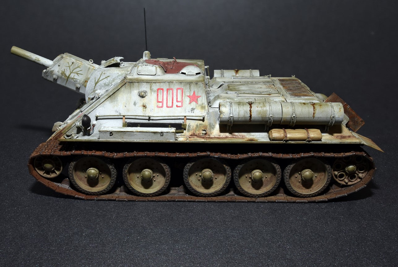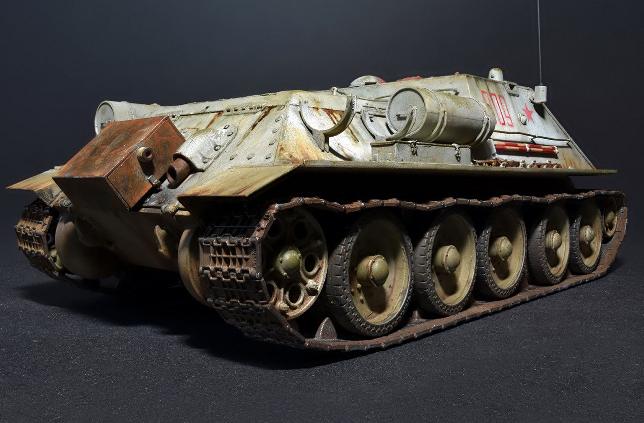 - Modelo de caza-carros soviético Su-122 de producción inicial, en escala 1/35.