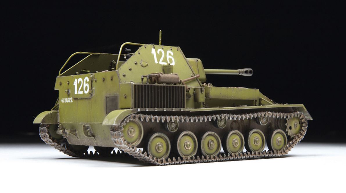 - Modelo de caza carro soviético Su-76 con cañón de 76mm, a escala 1/35.