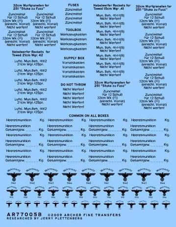 - Distintos diseños para incluir en los modelos de cajas de municiones alemanas de Nebelwerfer y Wurfrahmen, en escala 1/35.