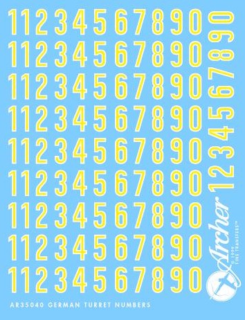 - Hoja de calcas con numerales de torretas de carros alemanas en escala 1/35.