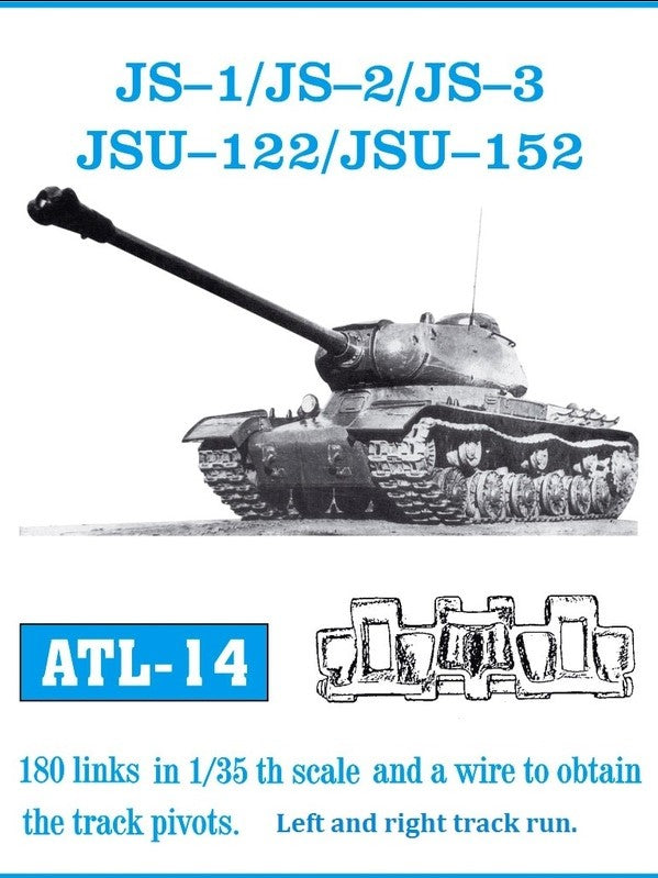 - Set de cadenas de metal para vehículos soviéticos JS-1, JS-2, JS-3, JSU-122 y JSU-152, en escala 1/35.