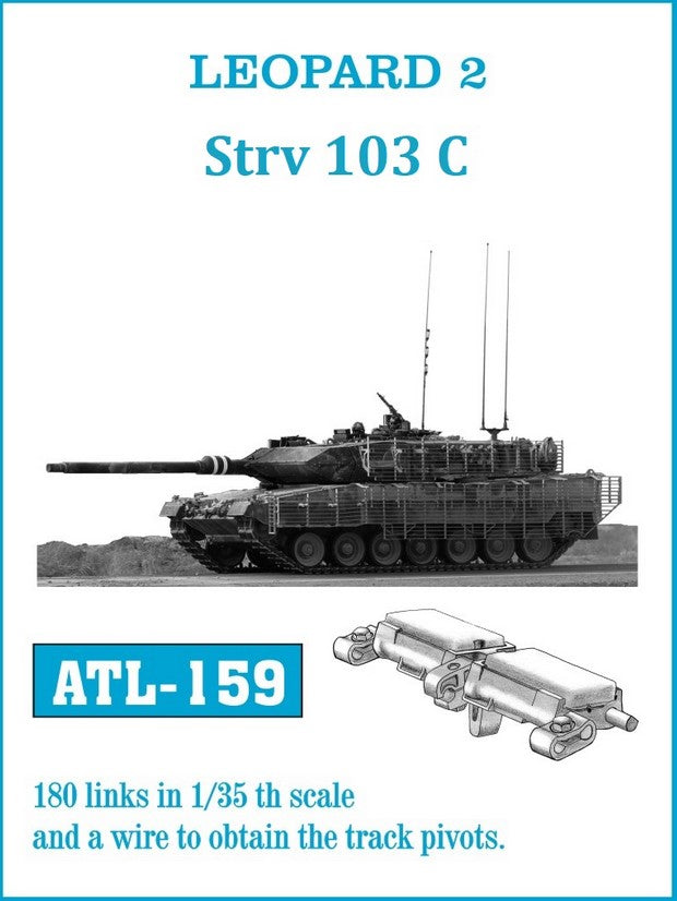 - Set de cadenas de metal para vehículos alemanes y Leopard 2 y sueco Strv 103C, en escala 1/35.