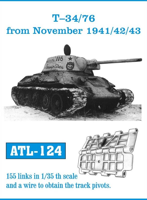 - Set de cadenas de metal para vehículos soviéticos T-34/76 desde noviembre de 1941 hasta 1943, en escala 1/35.
