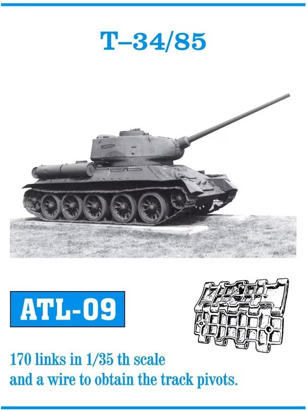 - Set de cadenas de metal para vehículos soviéticos T-34/85, en escala 1/35.