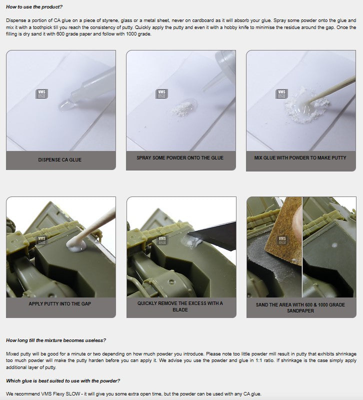 - Pegamento de acción rápida que se utiliza para rellenar huecos y así poder sellarlos.