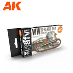 - Este set 3Gen ofrece al modelista los seis colores más comunes utilizados por tanques y unidades de artillería del ejército francés durante la Gran Guerra.