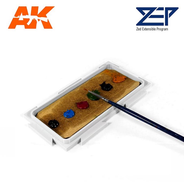 - Paleta húmeda para acrílicos, incluye: la base, la toalla de hidratación y las hojas de papel de hidratación.