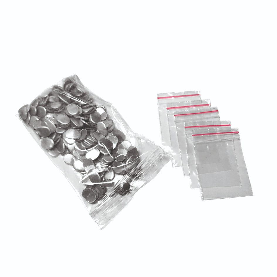 - Se pueden colocar de forma individual o agrupadas hasta llegar al peso deseado, pegándolas o utilizando las 5 bolsas con cierre zip que se incluyen.