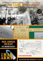 - Hoja de máscara con 50 símbolos y marcas que llevaba el bombardero norteamericano A-20 Havoc en su versión G, para aviones en escala 1/32.