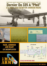 - Hoja de máscara con 18 símbolos y marcas que llevaba el caza alemán Dornier Do 335 A Pfeil, para aviones en escala 1/32.