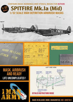 - Hoja de máscara con 20 símbolos y marcas que llevaba el caza Spitfire Mk I de la RAF, para aviones en escala 1/32.