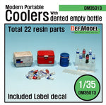 - Conjunto de neveras portátiles y botellas de agua, de coca-cola en escala 1/35.