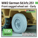 - Juego de ruedas delanteras deformadas por el peso para el vehículo semioruga alemán Sd.Kfz. 251 en su versión inicial, en escala 1/35.