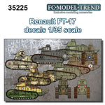 - Juego de calcas para el carro de combate de origen francés Renault FT-17 que sirvió en multitud de países, entre ellos en España, en escala 1/35..