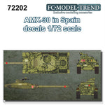- Juego de calcas para el carro de combate de origen francés AMX-30 en sus versiones E y EM, que sirvieron durante años en el Ejército español, en escala 1/72.