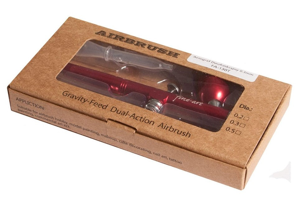 - El aerógrafo Fine-Art FA-130T es una pistola pulverizadora universal de doble propósito equipada con una copa de pintura integrada permanentemente en la parte superior del cuerpo.