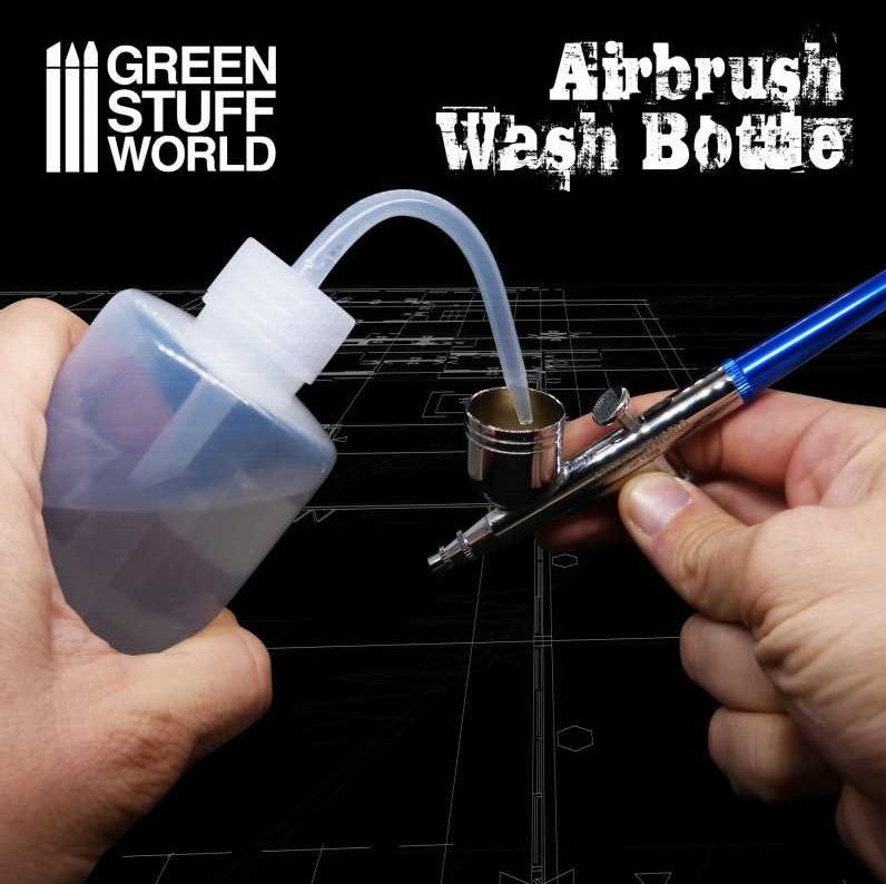- Botella de plástico LDPE con boquilla en forma de gancho para facilitar la limpieza del aerógrafo.