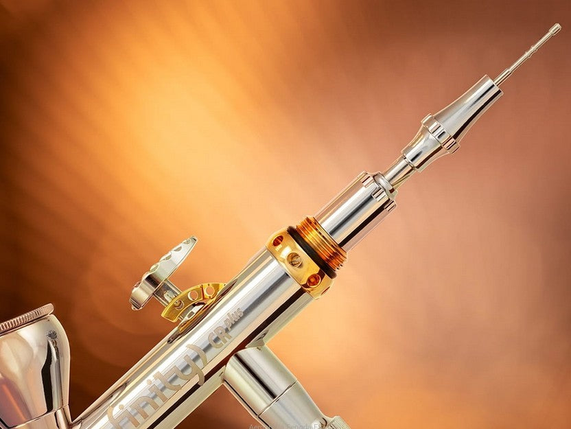 - El INFINITY 2024 CRplus estrena el nuevo sistema de boquillas TITANIUM, que ofrece precisión, robustez y control con una sensación totalmente intuitiva, respaldado por un rediseño completo en todo el aerógrafo. Un concepto de gatillo radicalmente nuevo, que ofrece conectividad extrema al movimiento de la aguja y un extremo frontal más corto para acercarte a tu trabajo, con la ergonomía de un pincel. Si quieres explorar el detalle extremo en tu creatividad, con una facilidad de mantenimiento nunca antes vista a este nivel.