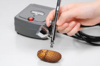 - Mini compresor compacto para aerografía. Suministra aire de manera consistente para poder abordar cualquier tipo de trabajo de pintura.