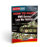 - Con este libro podrás aplicar los efectos de camuflaje y envejecimiento a cualquier vehículo alemán de la Segunda Guerra Mundial pintado desde septiembre de 1944 hasta el final de la guerra. La mayoría de las técnicas y efectos descritos son opcionales y tú decides si aplicarlos o no. Si quieres mejorar tus habilidades técnicas, te recomendamos que intentes aplicarlas todas. Este Libro de Soluciones muestra todos los productos necesarios y más apropiados para crear los efectos descritos. Si mantiene el orden de aplicación y los tiempos de secado mostrados, obtendrá excelentes resultados. El kit utilizado como ejemplo en esta guía es el Panther Ausf G escala 1/35 de Takom de producción tardía con plancha de defensa aérea e IR (ref Tako2121) ¡Ahora elige tu modelo favorito y déjate guiar paso a paso de la mano de un modelista experto! AMMO ofrece un conjunto de colores especialmente diseñado para pintar el vehículo que aparece en este libro.