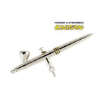 - Aerógrafo de doble acción y alimentación por gravedad, fabricado en Alemania, de reconocido prestigio y precisión asombrosa.