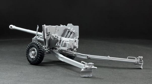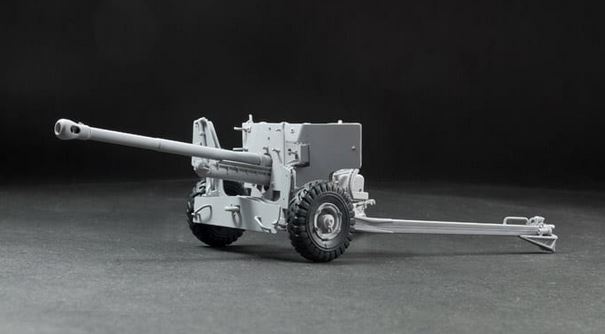 - Model of an American armored vehicle together with a 122mm howitzer in use by the Russian army, in 1/35 scale.