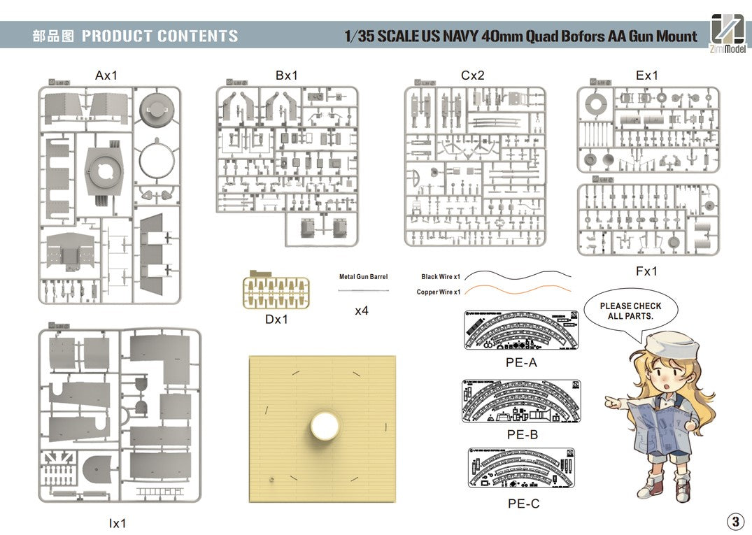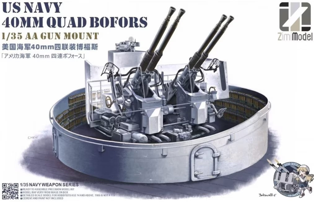 - Modelo de torre de batería cuádruple de cañones antiaéreos Bofors de 40mm utilizados profusamente por la US Navy en su navíos, en escala 1/35.