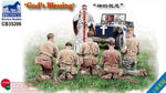 - Conjunto de figuras de cura castrense y soldados norteamericanos en oración durante la Segunda Guerra Mundial, en escala 1/35.