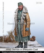 - Modelo de oficial alemán con indumentaria invernal y abrigo de lana de borrego, a escala 1/35.