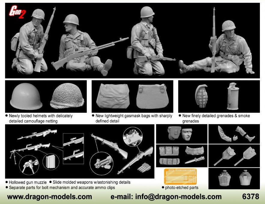 - Conjunto de soldados norteamericanos sentados encaramados a vehículo blindado durante los dos últimos años de guerra, en escala 1/35.