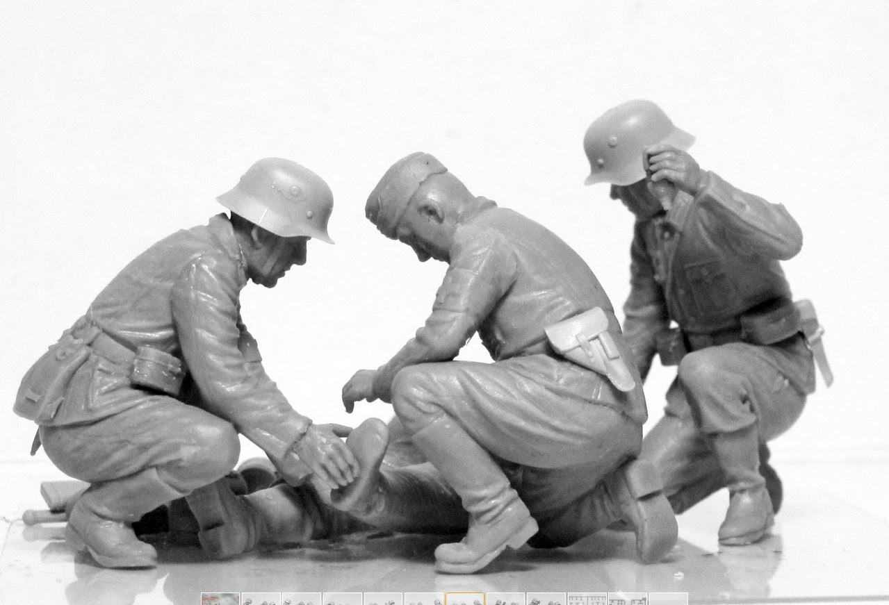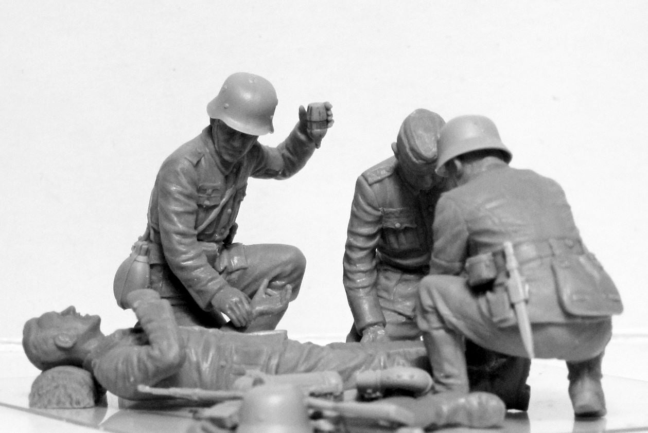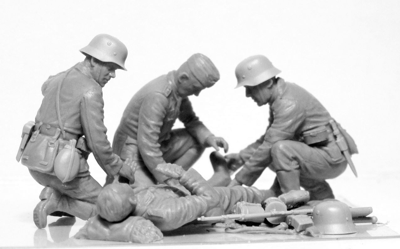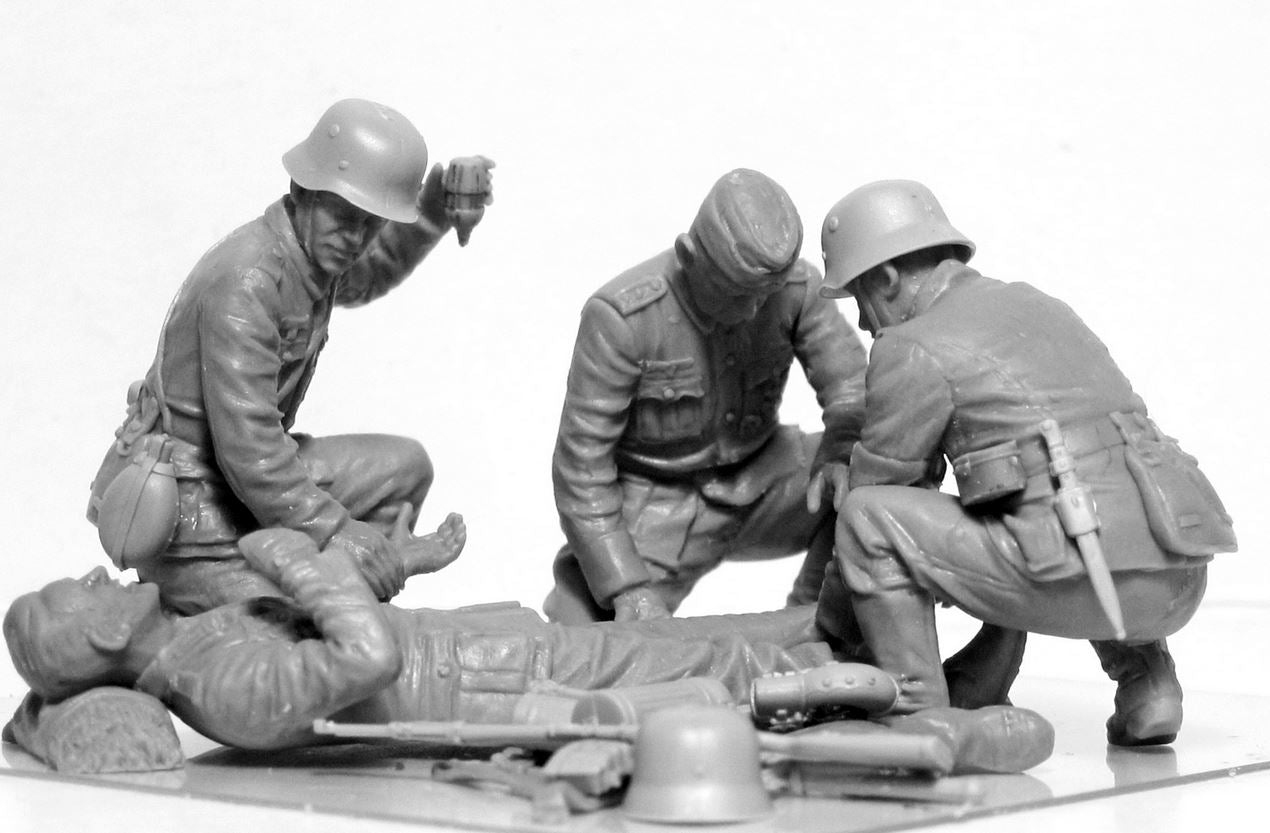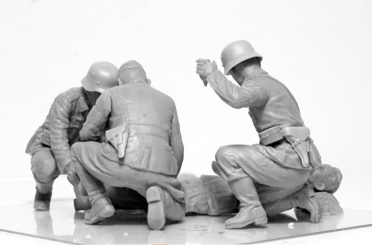 - Modelo de 4 figuras de sanitarios alemanes con un herido, en escala 1/35.