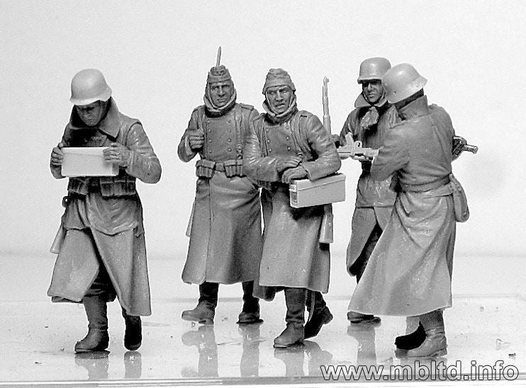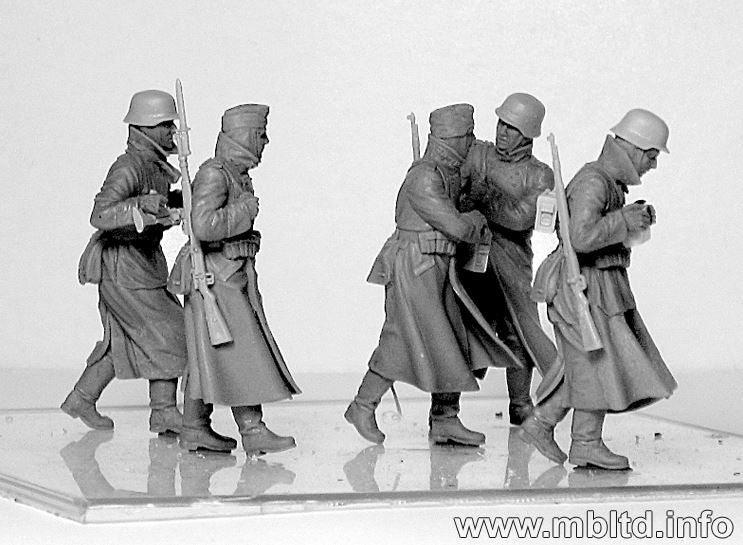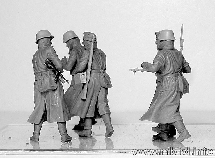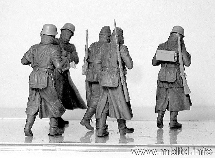 - Conjunto de figuras de soldados de infantería alemanes durante el invierno de 1941-42, en escala 1/35.