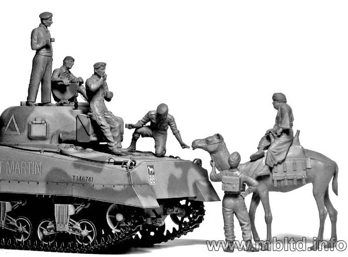 - Set of figures of German tankers from the Afrika Korps chatting with a Berber, in 1/35 scale.