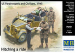 - Conjunto de figuras de paracaidistas americanos revisando una familia de civiles en 1945 en escala 1/35.