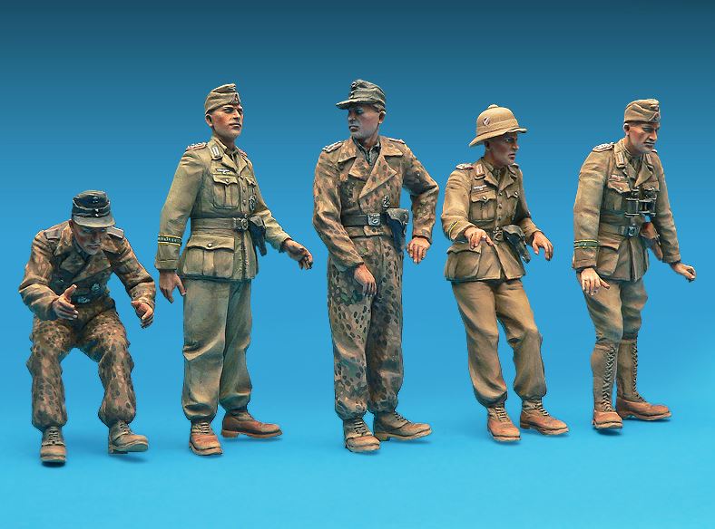 - Set of figures of German soldiers, crew of a personnel carrier in 1/35 scale.