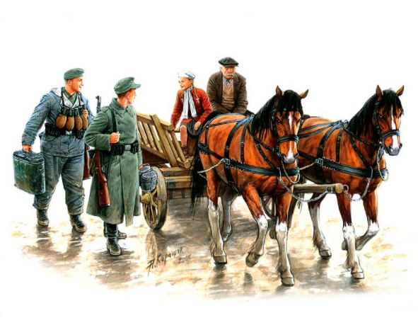 - Set of figures of German soldiers next to a peasant cart during 1944, in 1/35 scale.