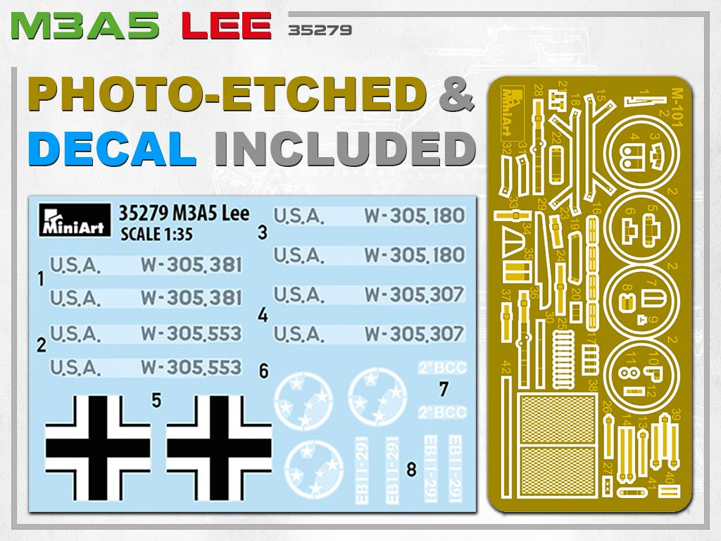 - Modelo del carro de combate americano M3 Lee en versión A5, en escala 1/35.