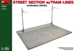 - Diorama of a section of paved street with tracks and tram catenary in 1/35 scale.