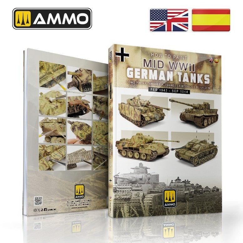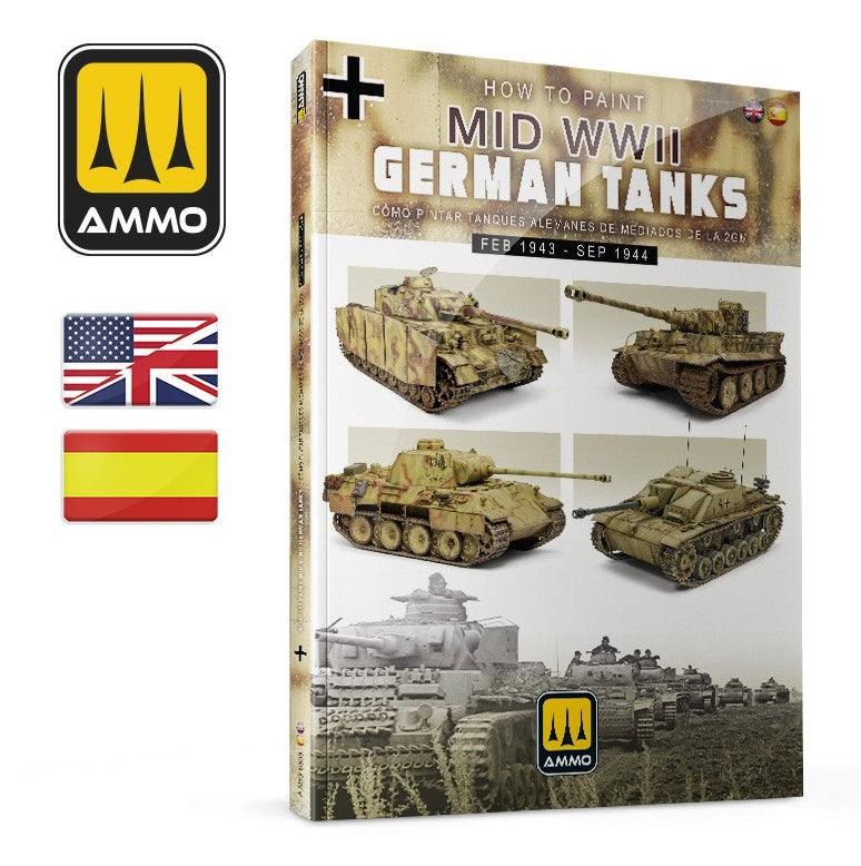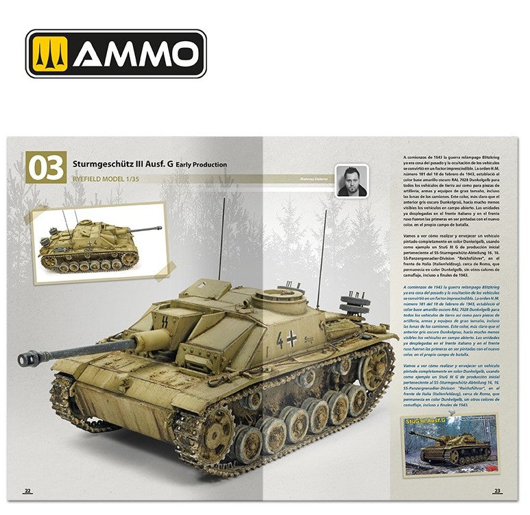 - En este libro, cinco grandes modelistas explican en detalle cómo realizar los camuflajes más utilizados por los blindados alemanes durante la fase intermedia de la II Guerra Mundial, que incluye la mayor parte de los años 1943 y 1944. En esta época se introdujeron nuevos colores de camuflaje, con una base de amarillo oscuro, Dunkelgelb en lugar del anterior gris oscuro, acompañado por manchas de color verde oliva, Olivgrün, y marrón oscuro Schokobraun. El período de mediados de guerra también vio la aparición del Zimmerit, la pasta antimagnética aplicada a las superficies verticales de los carros de combate y sus derivados, incluyendo cañones de asalto y cazacarros.