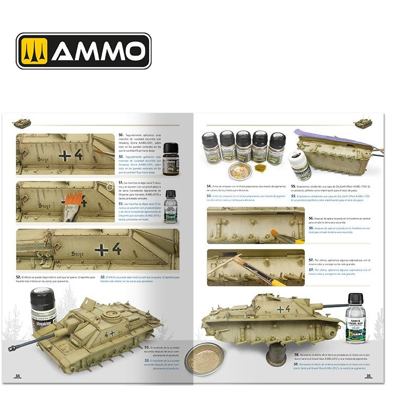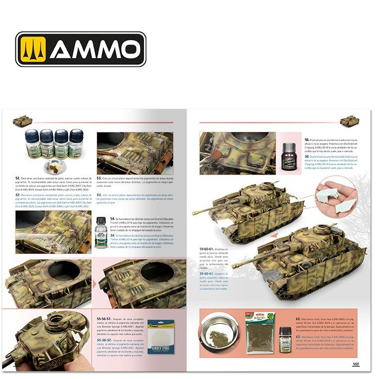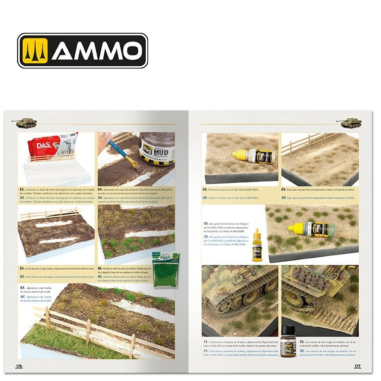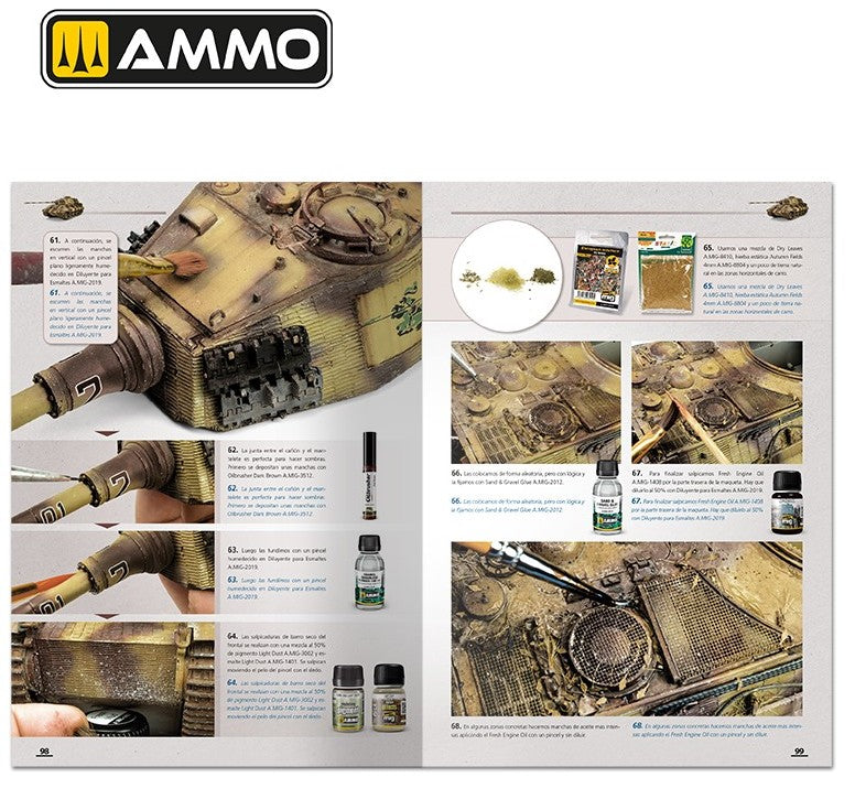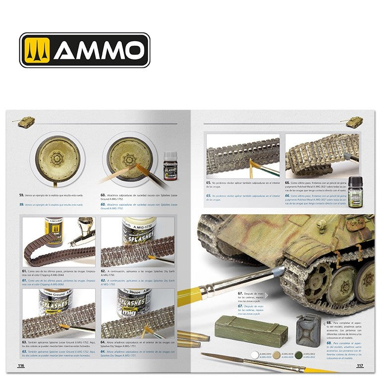 - No sólo se explica paso a paso el proceso de pintura de los camuflajes, también descubrirás las claves para obtener un excelente nivel de envejecido con efectos de barro, salpicaduras, escurridos, polvo, grasa y todo tipo de suciedad, e incluso como crear de forma sencilla una perfecta base ambientada.