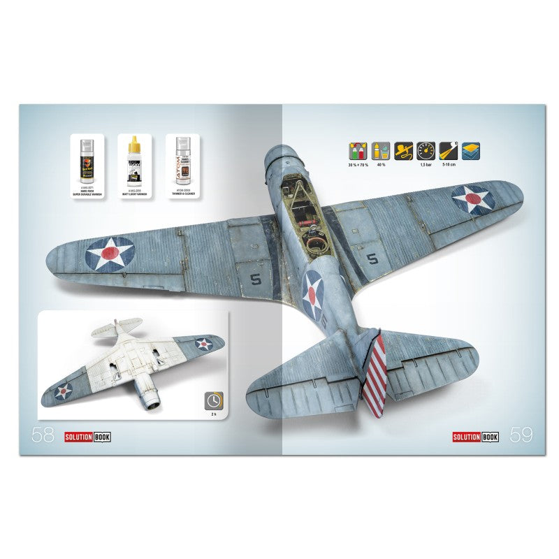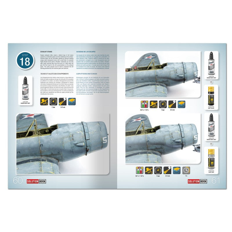 - Con este Solution Book podrás pintar cualquier avión de la U.S. Navy con camuflaje inicial de la II Guerra Mundial, por ejemplo aviones tan emblemáticos como el F4U Corsair, F4F Wildcat, TBD-1 Devastator, TBF/TBM Avenger, SBD Dauntless, entre otros. La mayoría de las técnicas descritas son opcionales y depende de ti decidir si las aplicas o no. Si quieres mejorar tus técnicas de pintura y envejecido te recomendamos que intentes aplicarlas todas. Puedes recrear cualquier nivel de desgaste en tus maquetas variando la intensidad de cada efecto. La maqueta utilizada en este libro es el Douglas TBD-1 Devastator a escala 1/48 de GWH. ¡Ahora elige tu maqueta favorita y déjate guiar paso a paso por un modelista experto!
