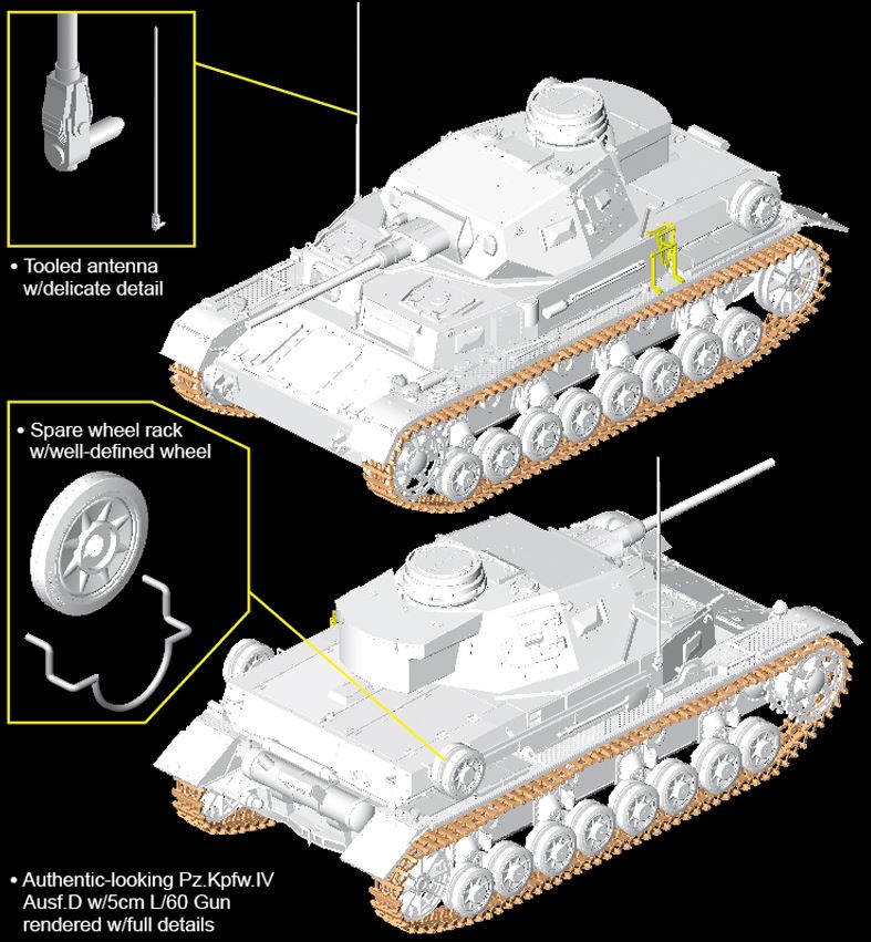 • Modelo de carro de combate alemán Panzer IV en su versión D con cañón largo L/60 de 50mm, en escala 1/35.