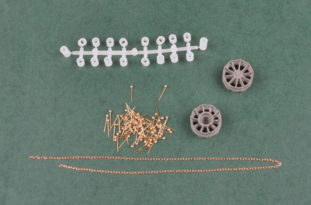 - Se incluyen piezas transparentes, fotograbados, cables y cadena.