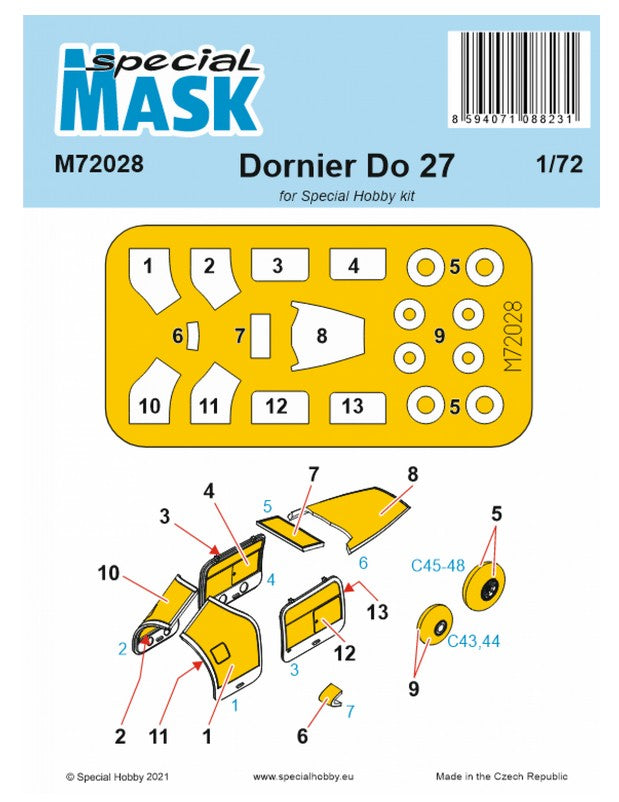 - Hoja de mascara para el avión de transporte y entrenamiento de origen alemán Do.27, en escala 1/72.