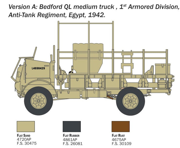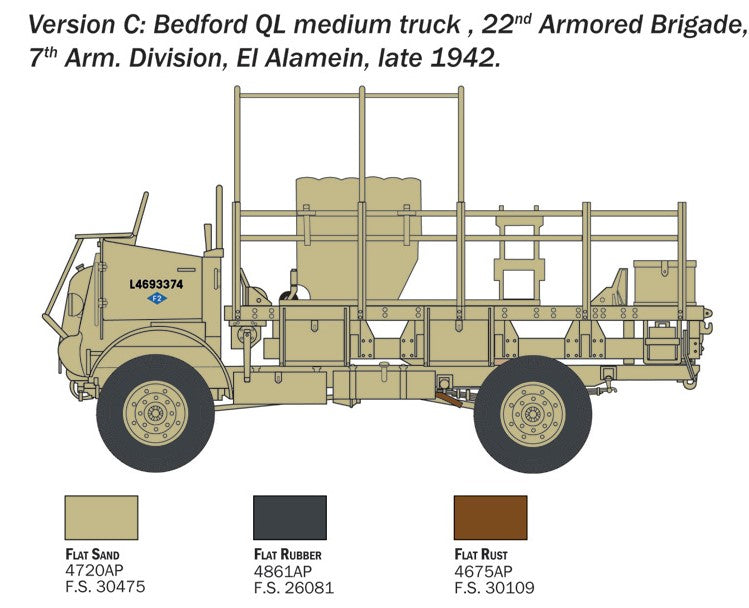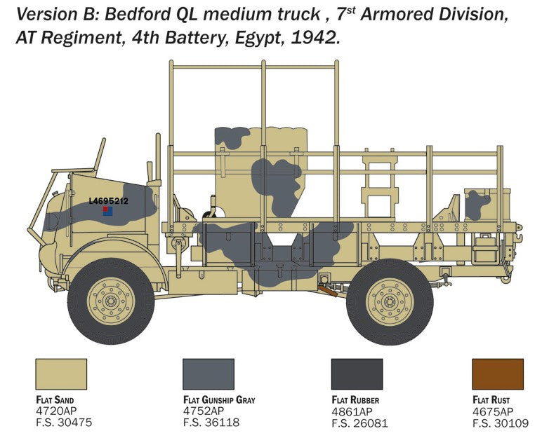 - Modelo de vehículo de transporte británico Bedford QL, en escala 1/35.