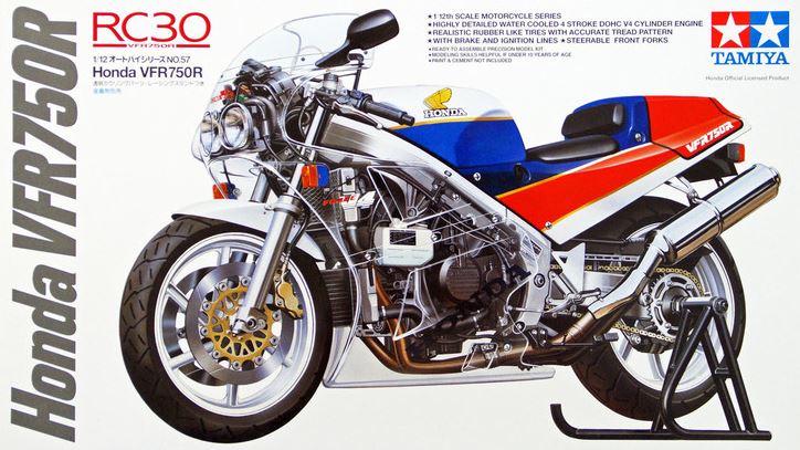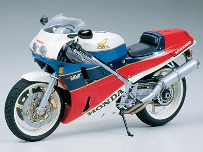 - Maqueta sin montar ni pintar, réplica de la Honda VFR750R, en escala 1/12.