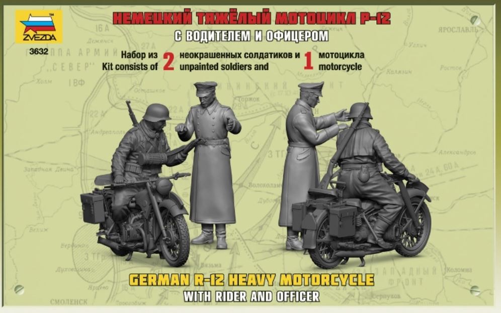 - Modelo de motocicleta pesada alemana R12, en escala 1/35.