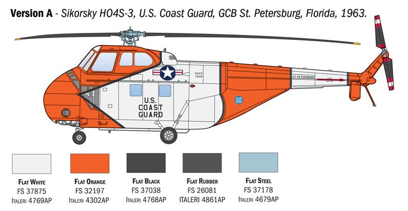 - Modelo de helicóptero norteamérciano de transporte y salvamento Sikorsky HO4S-3 también denominado como HAS.7 y H-19, en escala 1/72.